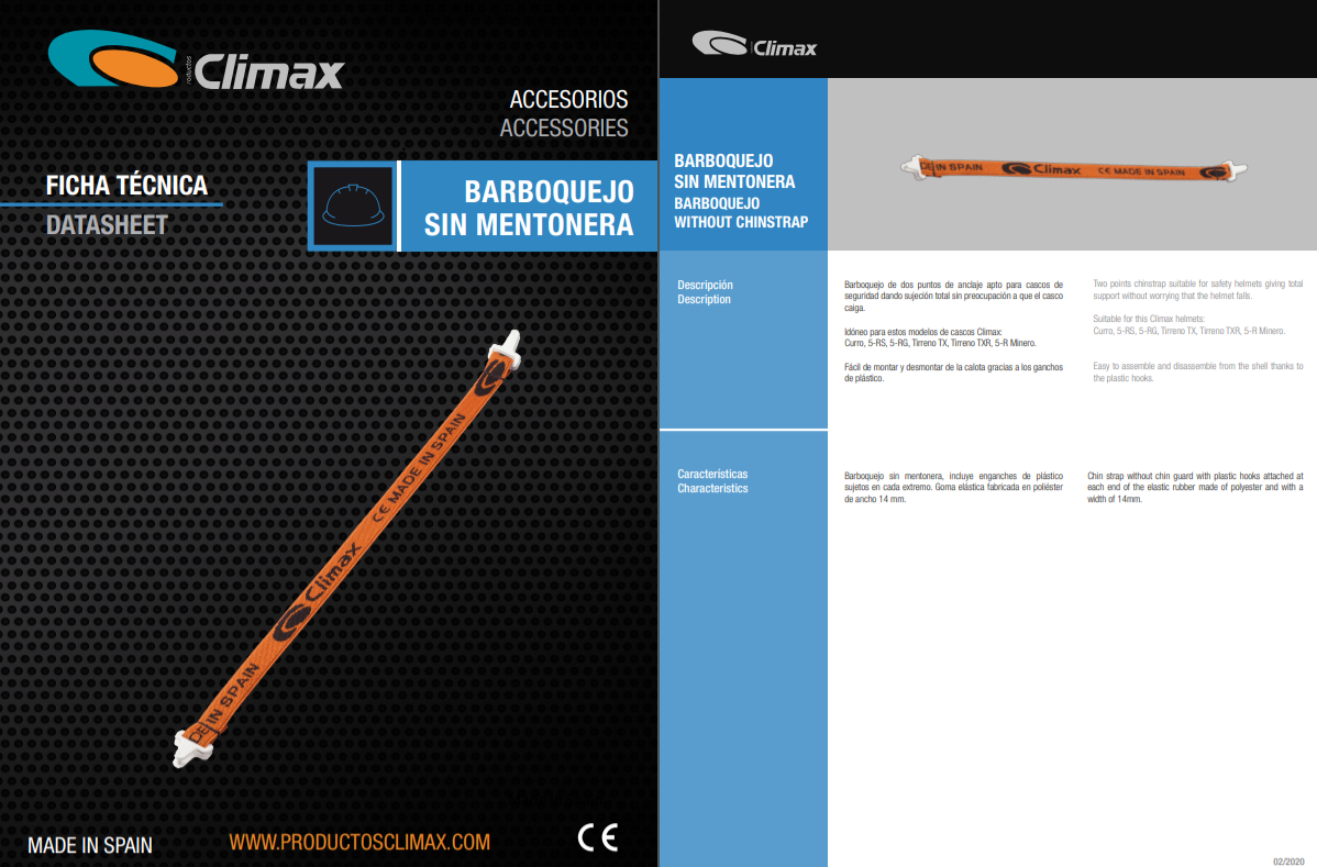 Accesorio apto para cascos de seguridad dando sujeción total sin preocupación a que el casco caiga. Barboquejo sin mentonera fabricada en polietileno con enganches de plástico sujetos en cada extremo de la goma elástica fabricada en poliéster y con una anchura de 14mm.