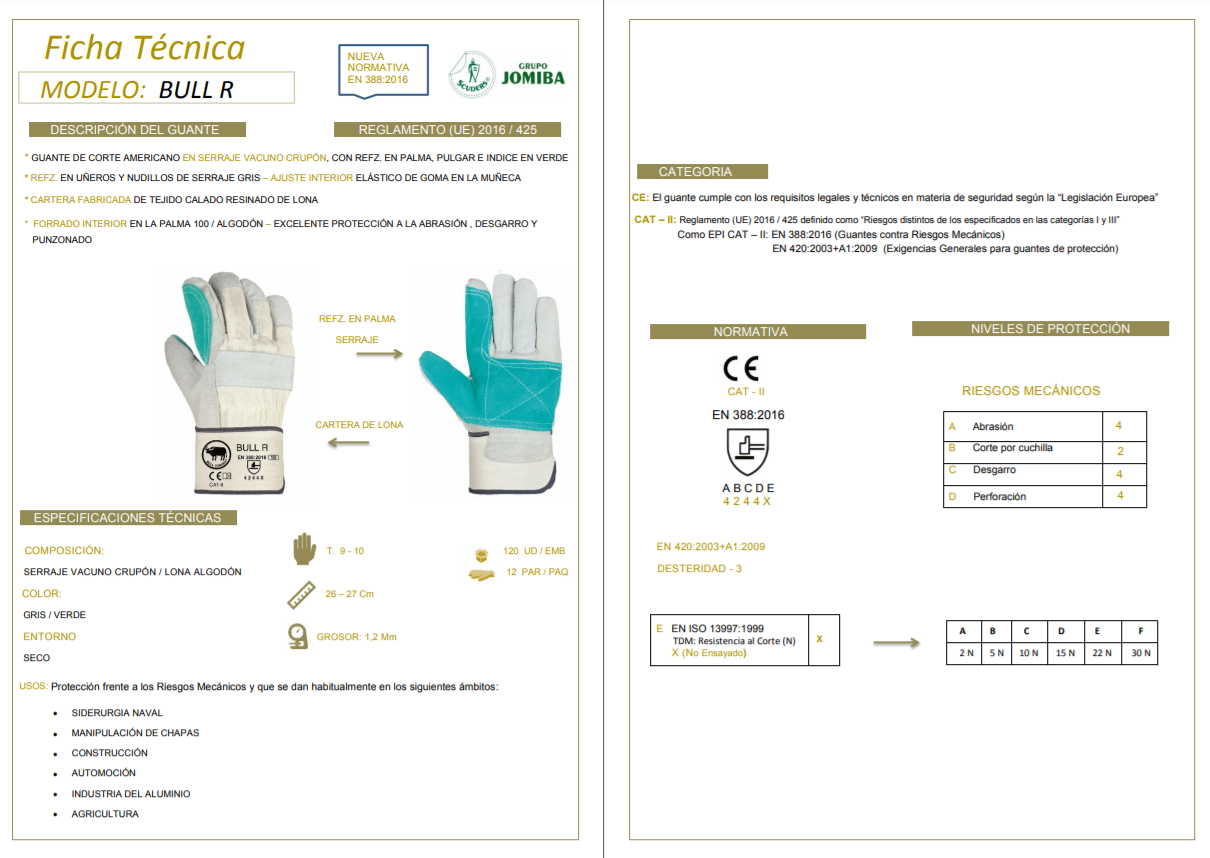 - Guante de corte americano en Serraje vacuno calidad extra con refz. en palma,pulgar e indice en color Verde