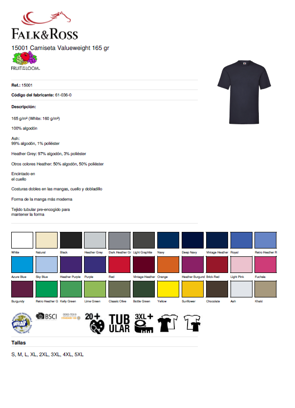 - Otros colores Heather: 50% algodón, 50% poliéster