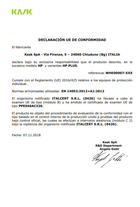 CASCO EXTERNO: ABSCASCO INTERNO: HD PoliestirenoSUSPENSION: PA Nylon suavepeso: 450 gcódigo de producto: WHE00046.201estándar: EN 14052tallas: Universal - regulable de 51 a 62 cmCASCO HP CRI VISOR KASK SAFETYSKU: EN-1405298,37 €PrecioColoresAMARILLOCantidad*Agregar al carritoRealizar compraFICHA TÉCNICAVER CERTIFICACIÓNVER