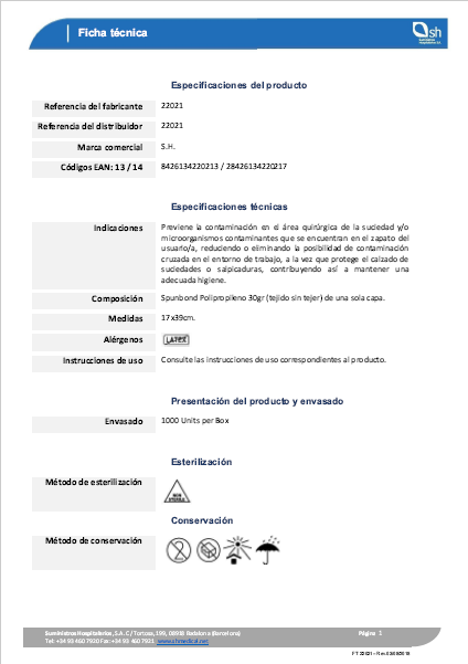 Diseñado para cubrir el calzado de paciente o personal sanitario evitando el contacto de la suela con el suelo limpio. Ofrece una barrera apropiada frente a partículas, fluidos y microorganismos.