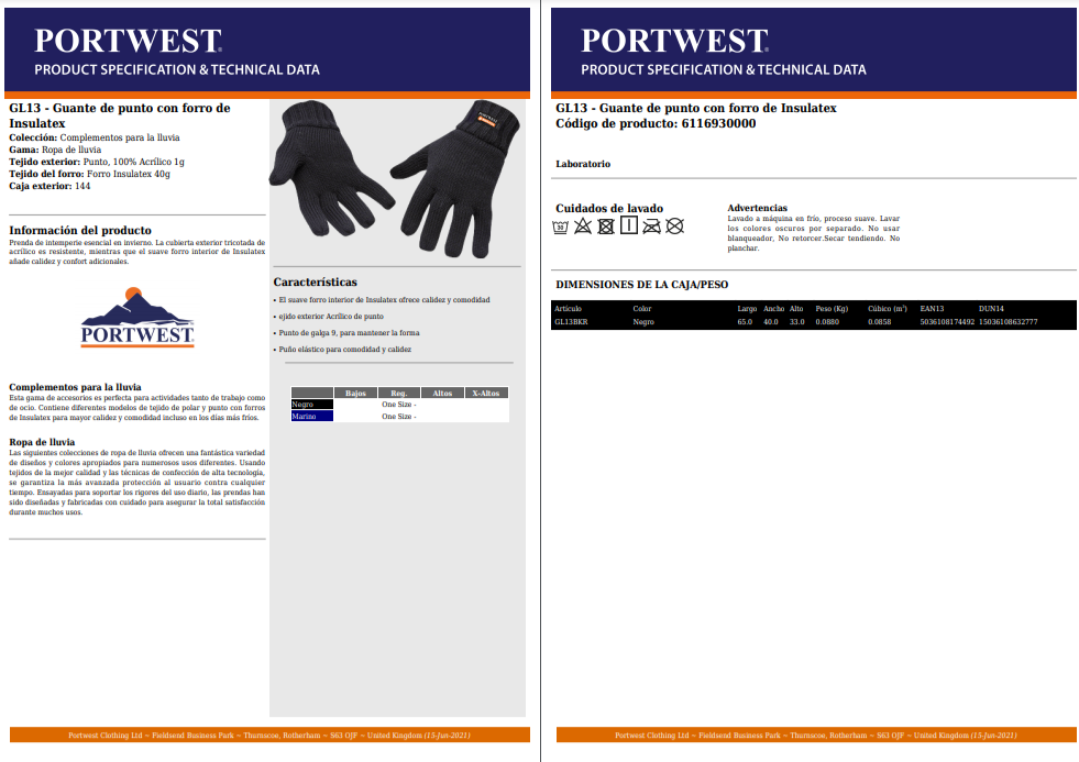 GUANTE DE PUNTO CON FORRO DE INSULATEX NEGRO PORT WEST (1 PAR)