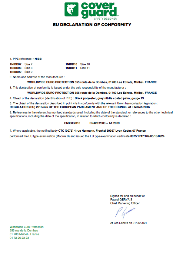 GUANTE NITRILO POLIESTER NEGRO GRIS COVERGUARD SAFETY (12 PARES)