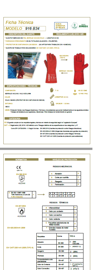 GUANTE SOLDADOR SERRAJE VACUNO LONGITUD 34 CM JOMIBA (12 PARES)