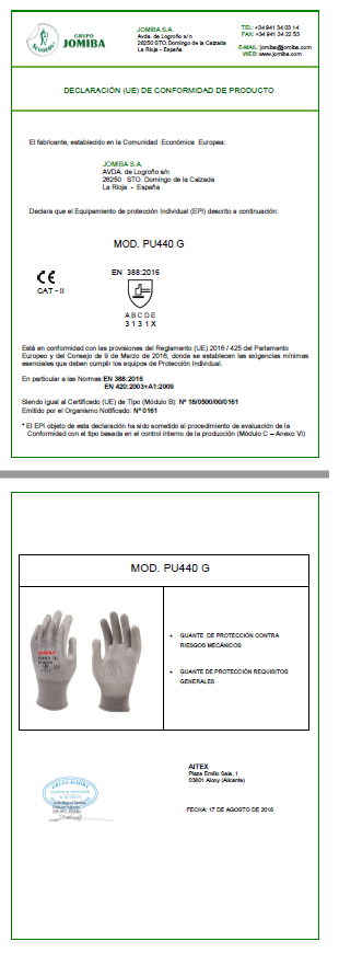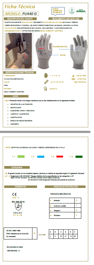* Guante con prestaciones altas a la Abrasión(3)