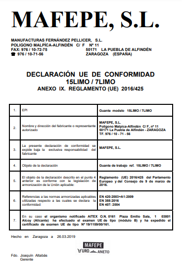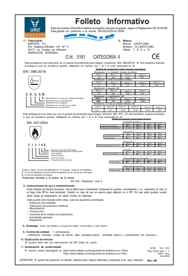 Con la implantación de la nueva norma EN 388:2016 MAFEPE garantiza que las prestaciones de nuestros guantes y los procedimientos de producción de los mismos no sufrirán cambios. Durante un periodo de tiempo ambas normas (antigua y nueva) convivirán por lo que pueden recibir guantes con diferentes marcados (antiguo y nuevo) dependiendo de si es mercancía que ya se disponía en nuestros almacenes o en producción.