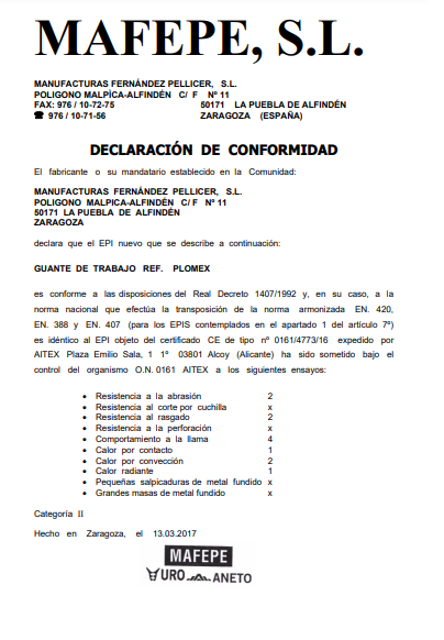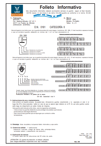Con la implantación de la nueva norma EN 388:2016 MAFEPE garantiza que las prestaciones de nuestros guantes y los procedimientos de producción de los mismos no sufrirán cambios. Durante un periodo de tiempo ambas normas (antigua y nueva) convivirán por lo que pueden recibir guantes con diferentes marcados (antiguo y nuevo) dependiendo de si es mercancía que ya se disponía en nuestros almacenes o en producción.