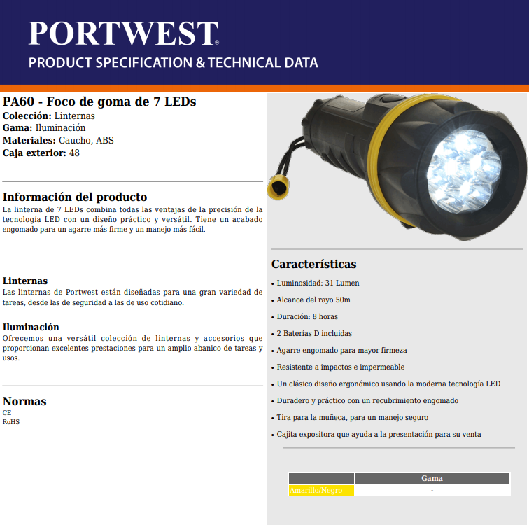 La linterna de 7 LEDs combina todas las ventajas de la precisión de la tecnología LED con un diseño práctico y versátil. Tiene un acabado engomado para un agarre más firme y un manejo más fácil.