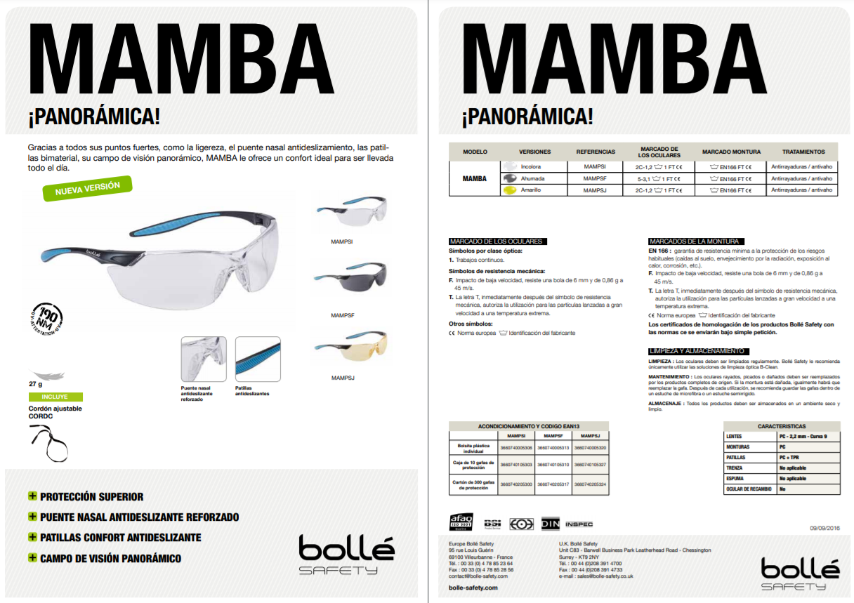 Gracias a todos sus puntos fuertes, como la ligereza, el puente nasal antideslizamiento, las patillas bimaterial, su campo de visión panorámico, MAMBA le ofrece un confort ideal para ser llevada todo el día.