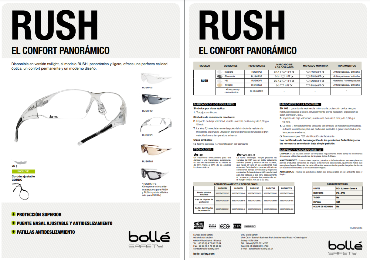 El modelo RUSH, panorámica y ligera, ofrece una perfecta calidad óptica, un confort permanente y un moderno diseño
